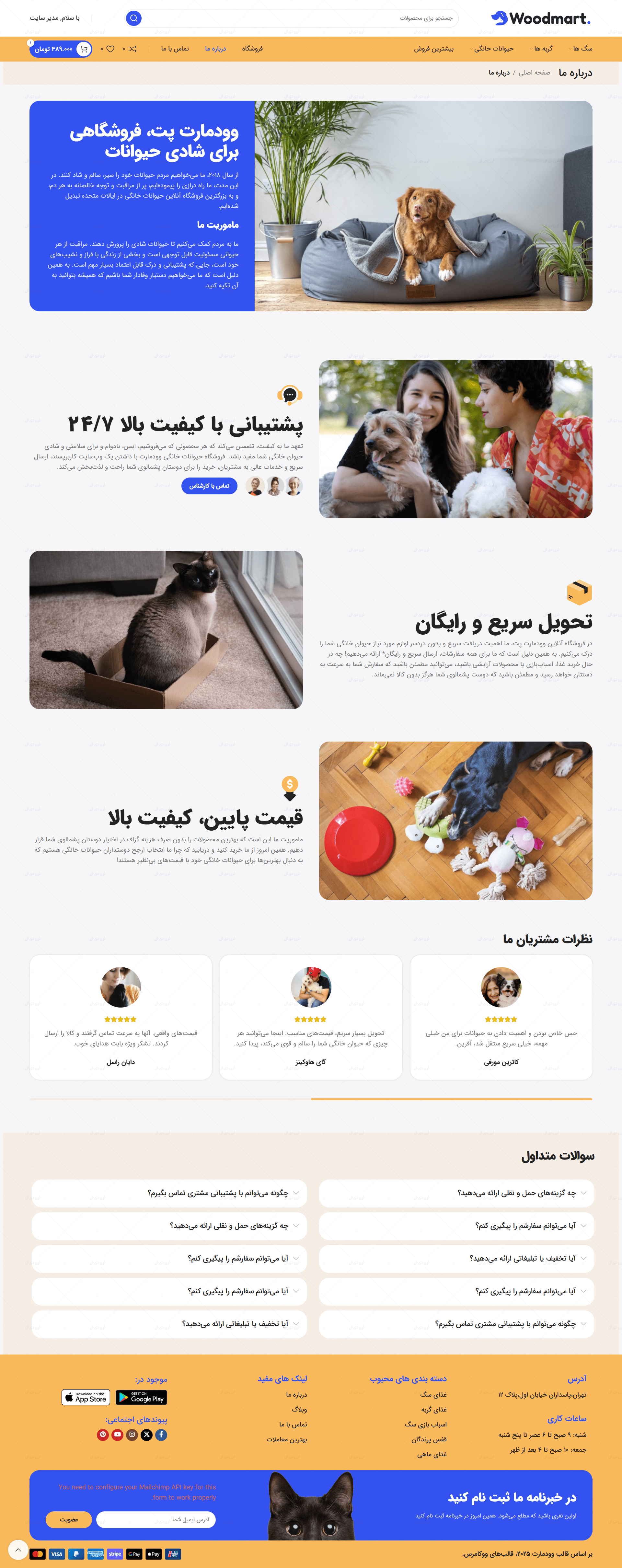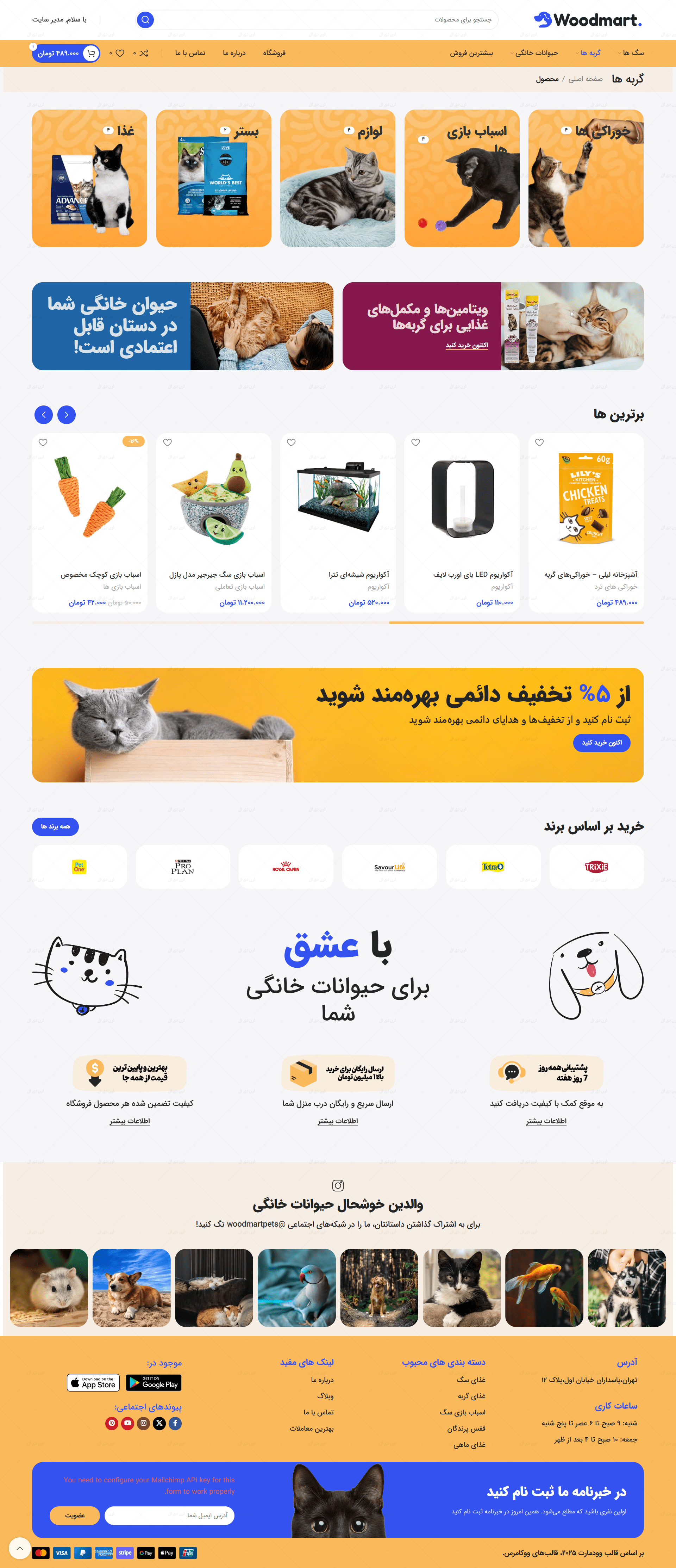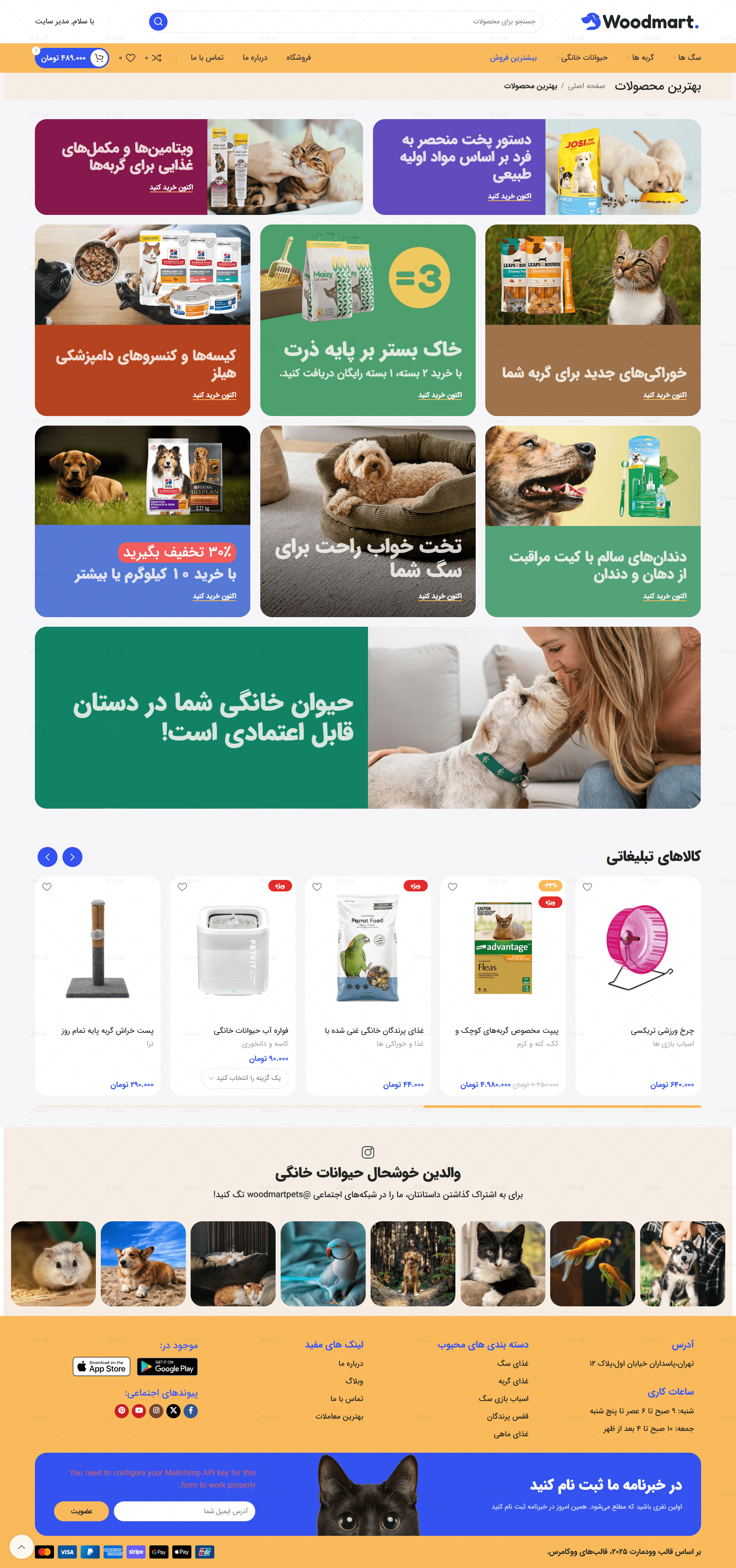 سایت آماده پت شاپ به صورت کاملا اختصاصی و فارسی توسط سایت ما با استفاده از قالب وودمارت طراحی شده است.