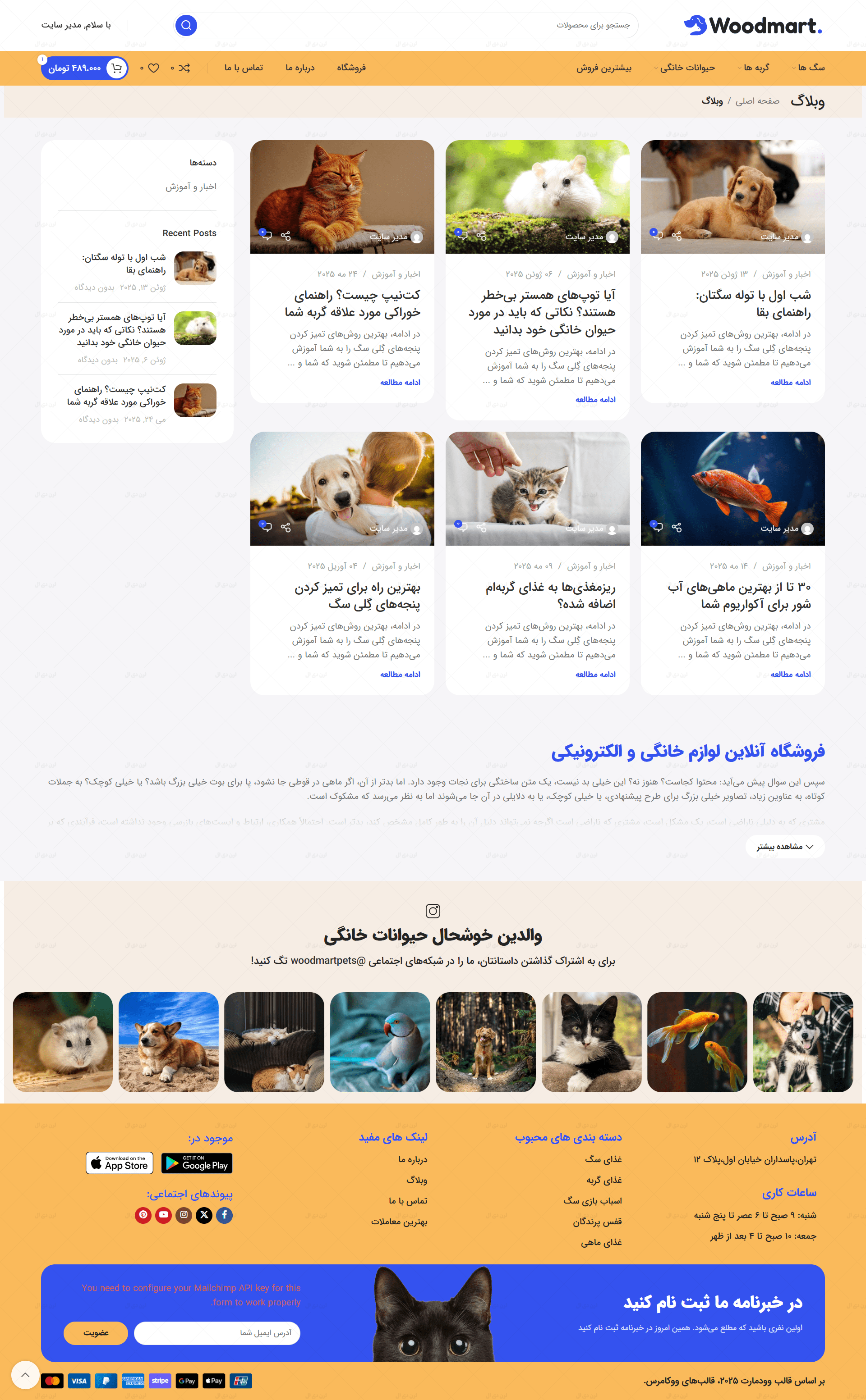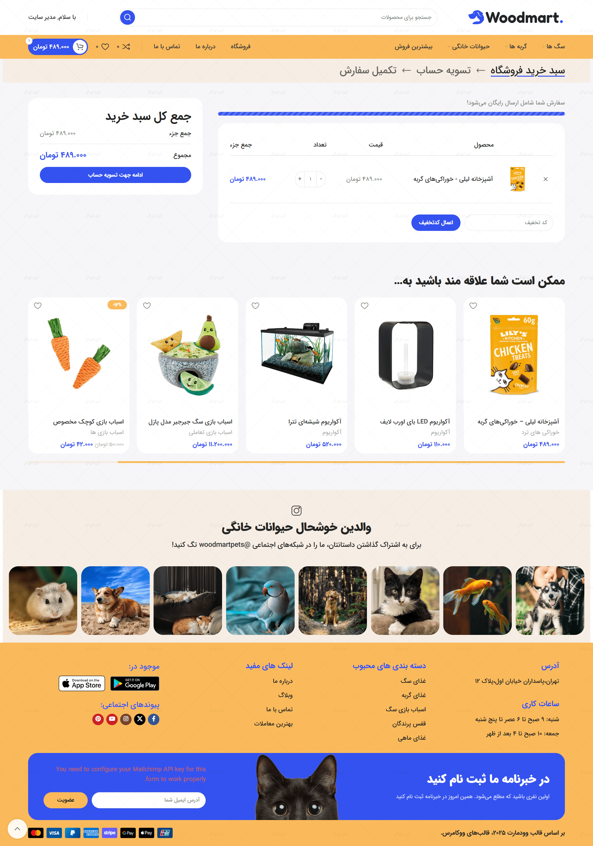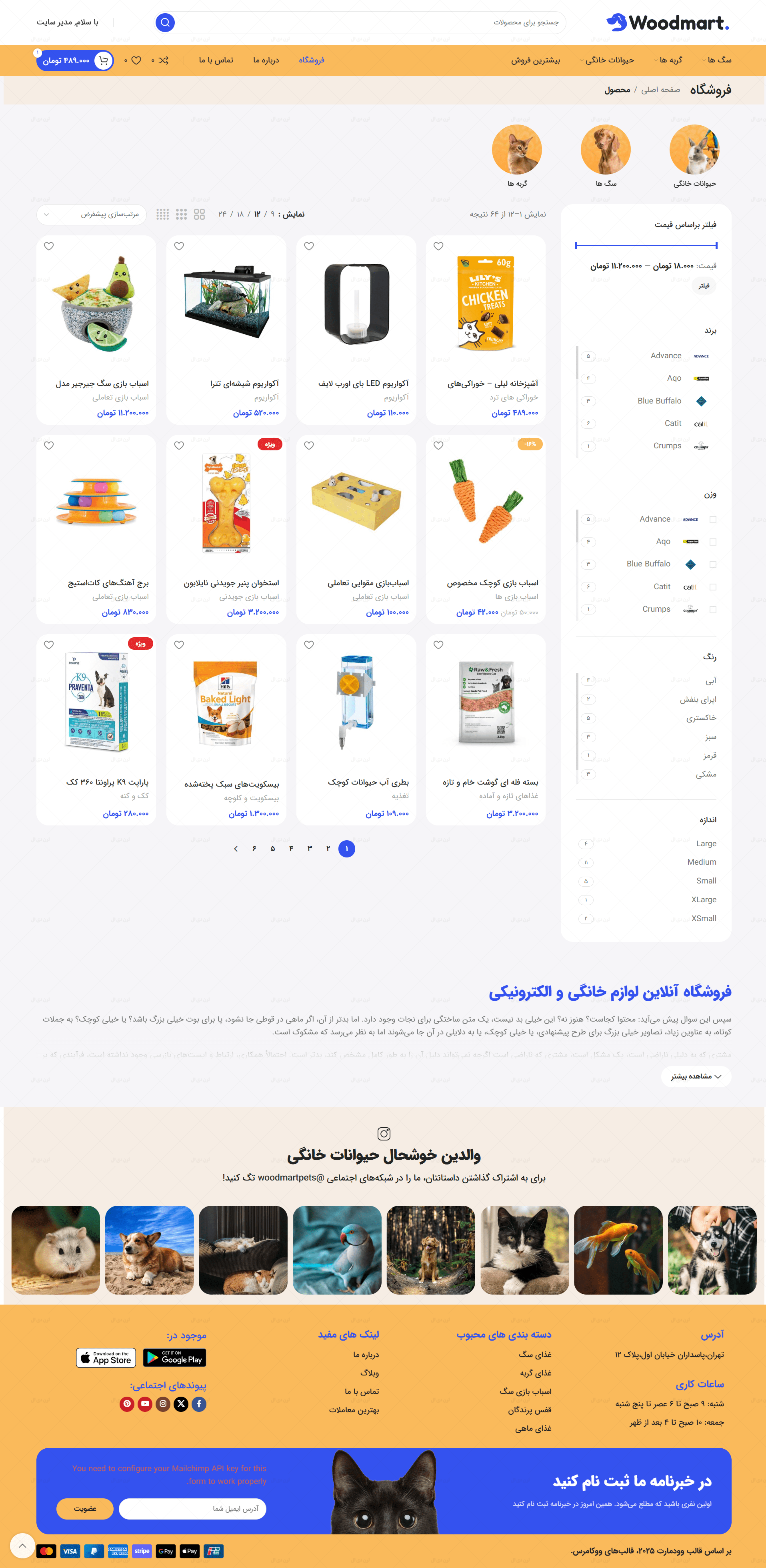 سایت آماده پت شاپ به صورت کاملا اختصاصی و فارسی توسط سایت ما با استفاده از قالب وودمارت طراحی شده است.