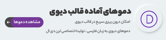 مجموعه دموهای آماده و فارسی برای قالب وردپرس دیوی و افزونه صفحه ساز المنتور با فرمت JSON به صورت درون ریزی